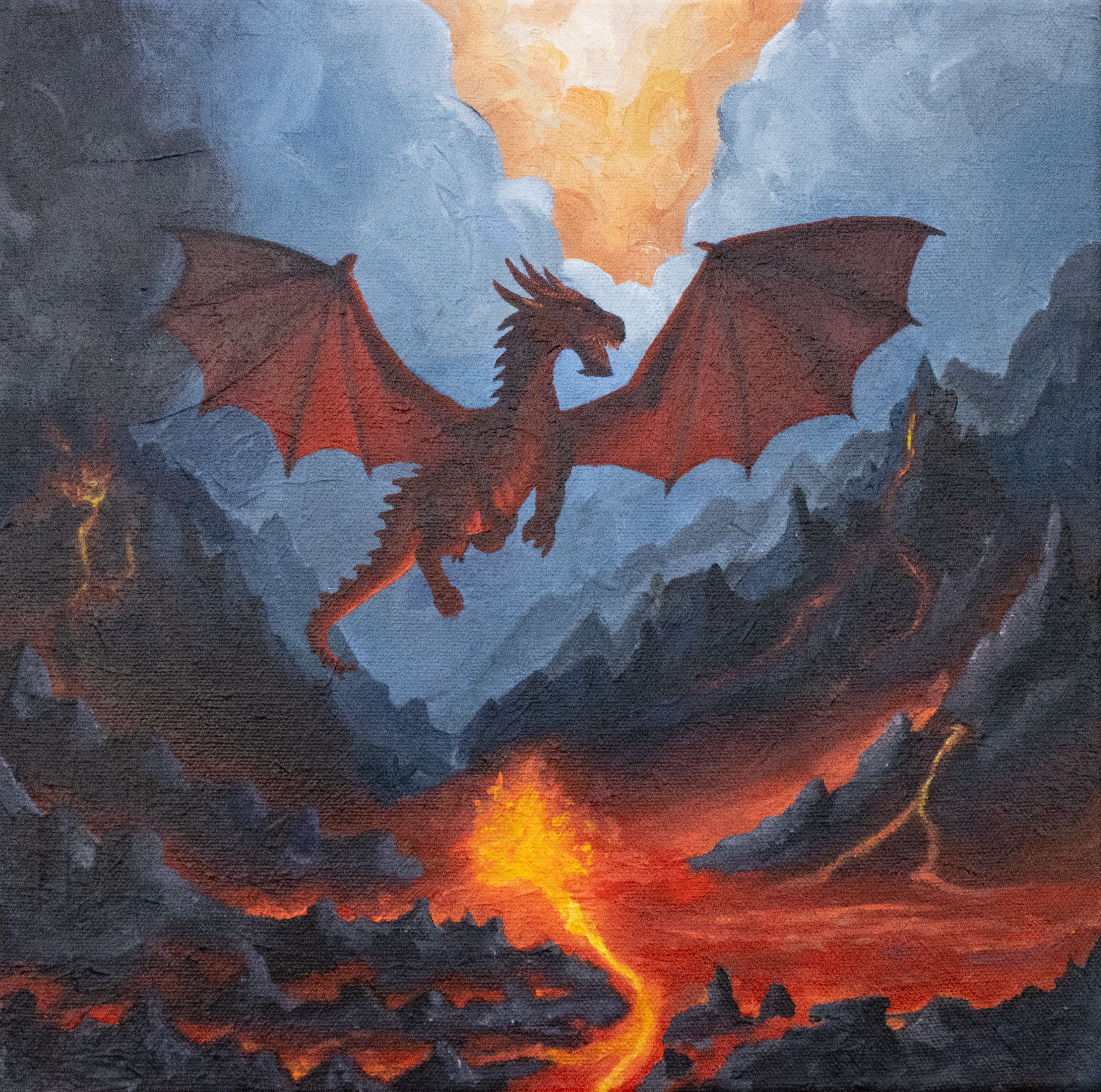 Much of my recent work explores beauty, nature, and power: how it is seen, felt, constructed, and mythologized. In my ongoing series What Is Power?, skyscape paintings featuring dragons and turbulent weather juxtapose natural phenomena with fantastical imagery to create space for reflection. Power may appear as the force of nature, the presence of a creature, the act of creation, or something unknowable and unseen. Rather than offering answers, these visual pairings invite a contemplative dialogue, asking where meaning and authority reside, and how imagination reshapes our understanding of them. In a very different way, my series Endangered Species of North America uses solely ink, through lines and dots, to depict animals facing extinction. The hours spent stippling each creature are insignificant compared to the natural and human-made forces threatening their survival. My ongoing photography practice often focuses on the things unseen or under appreciated. Whether it be portraits embracing the fears of its subject, or still lives of the mundane, I search for significance in the smallest of ideas.