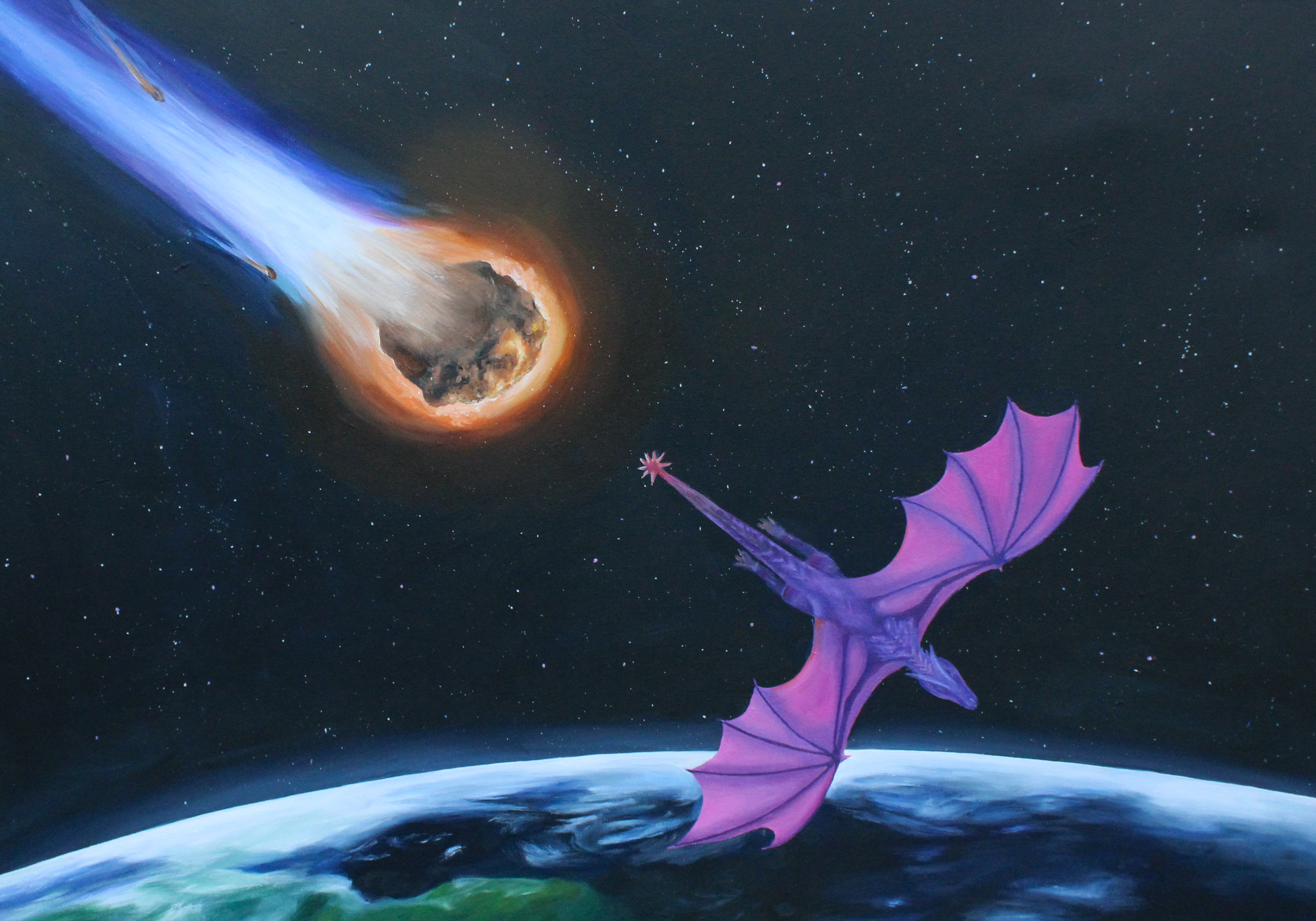 In her latest series, “What is Power?”, Julia Wilmot presents over a dozen evocative paintings exploring the forces of nature and imagination. Through dynamic skyscapes, turbulent weather, and the presence of dragons, the work asks where power resides—above, within, or beyond.
